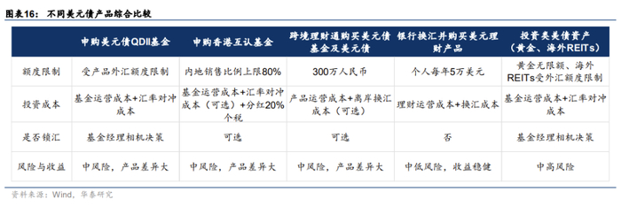华泰证券表示,境内投资者可以通过五种方式购买美元债及其相关产品:申购美元债QDII基金、申购香港互认基金、通过跨境理财通购买美元债基金及美元债、银行换汇并购买美元理财产品、投资类美债资产。