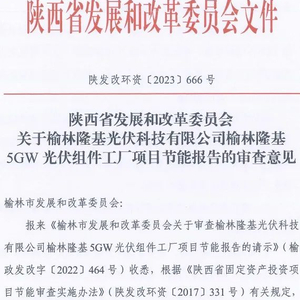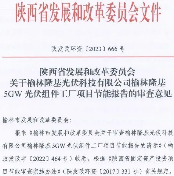 2025年1月8日,陕西发改委公布了其对于榆林隆基光伏科技有限公司5GW光伏组件工厂项目的节能报告意见,原则同意所报项目节能评估报告。