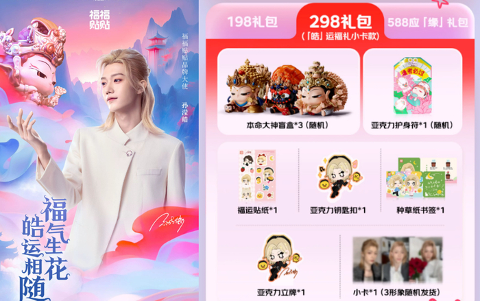 本期榜单上的新面孔,还有福福贴贴旗舰店的孙滢皓应援十二生肖本命大神新年盲盒。