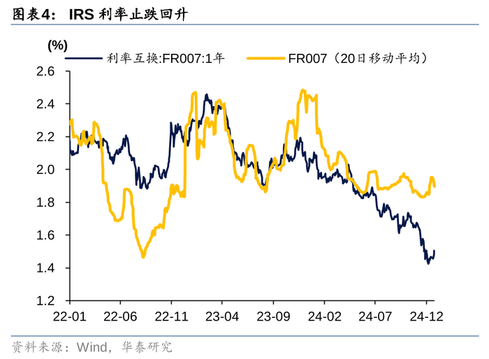 近日IRS利率止跌回升,也侧面反映市场对降息的定价在发生变化。