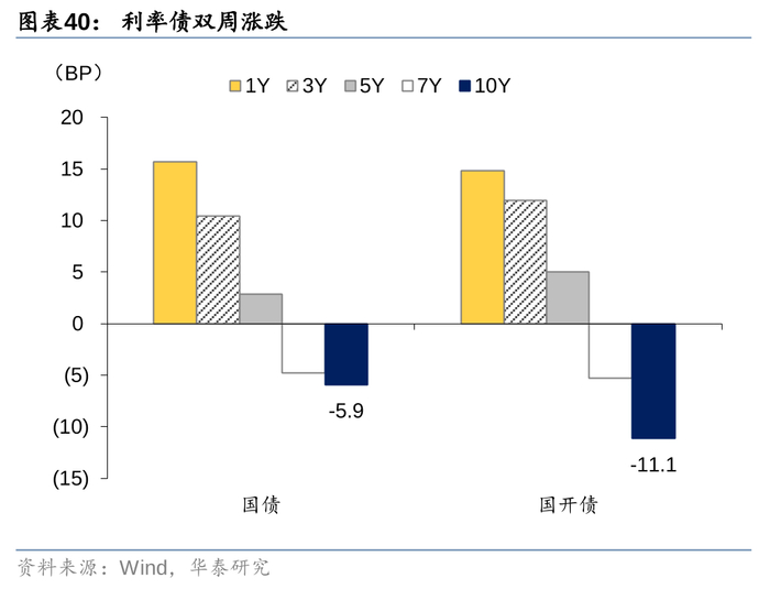 当前环境下,市场缺少明显操作机会,可继续从相对价值寻找机会。重申调整仍是机会,目前30-10年利差保护尚可(但隐含了政策取向),可继续用超长端做波段,但操作难度大。信用债方面,前期推荐的3-5年信用债近期表现较好,利差出现一定压缩,建议继续把握5年信用利差收窄机会。超短久期利率债如期调整,但横向比较依然不如存单和IRS。
