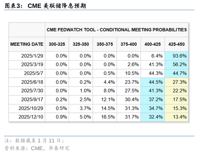 三是,美国经济强韧性,通胀及就业数据指向美联储将暂缓降息。根据CME Fed Watch,市场预期美联储下次降息或在下半年,今年只降息一次。
