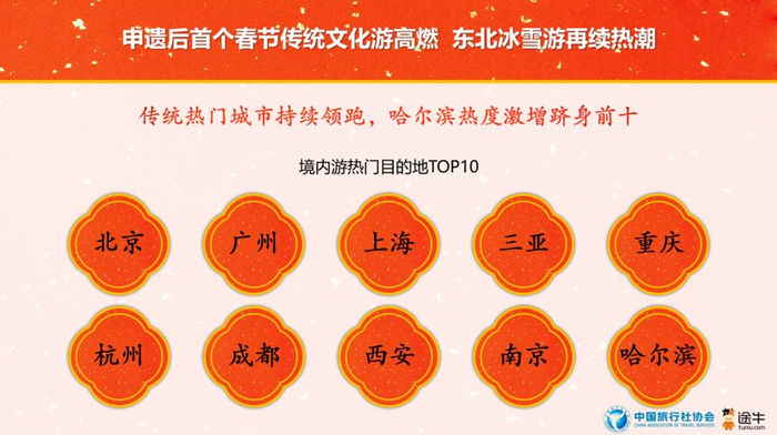 2024年12月4日,“春节”列入联合国教科文组织人类非物质文化遗产代表作名录。“春节”申遗成功后的首个春节假期,游客对探寻优秀传统文化表现出浓厚兴趣,以感受非遗民俗、手工技艺等为主题的文化体验游备受青睐。