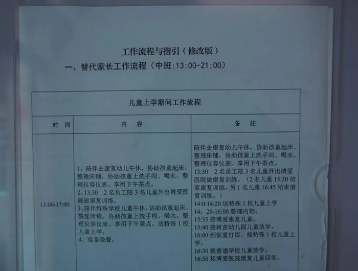 “首先是按性别划分,男孩和女孩不会被分到同一个家庭。其次是根据年龄和照看难度划分,如果某个家庭中有小孩的残障程度较高,那这个家庭不会放满四个孩子,可以是两到三个。”