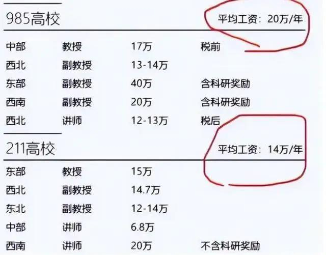 曾经就有一份统计数据,985高校的教师平均年薪在20万左右、211教师14万左右、普本教师也能达到10万元上下。