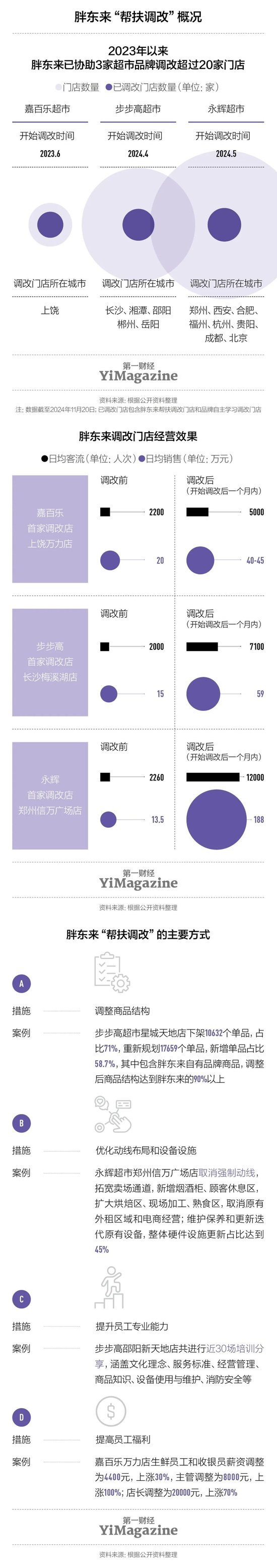 感性冲击之外,胖东来在2024年还以一种切实的方式对零售业输出影响。4月和5月,胖东来宣布无偿帮扶调改长沙步步高超市和永辉超市部分门店,其中上市公司永辉是商超巨头,全国门店总数超过800家,生意体量和供应链规模都与胖东来不在一个层级。