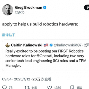 此前,OpenAI硬件主管Caitlin Kalinowski在社交网站上称,OpenAI正重新组建机器人部门,同时发布了招聘信息,包括电气工程传感工程师,负责开发传感器套件,使机器人能够与动态环境交互并适应动态环境;机器人机械设计工程师,负责设计齿轮、致动器和电机等关键组件;TPM项目经理,负责监督产品管理、实验室运营和设计阶段的进展。