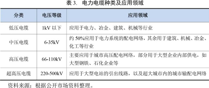 电力电缆和裸电线(导线)是电线电缆行业两大重要分支,是电网建设中的重要组成部分。根据电压等级细分为低压、中压、高压和超高压电缆。通常电压等级越高,对电力电缆生产企业的制造水平、工业装备要求越高。裸电线(导线)按材质可分为裸铜线、裸铝线、裸铝合金线、双金属线等。