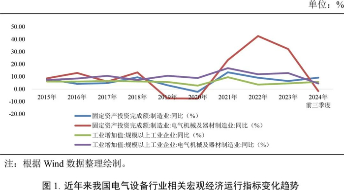 2023年及2024年前三季度,我国宏观经济增长动能有所减弱,但在基建稳增长及新能源产业仍维持较高增速情形下,电气设备行业整体维持高景气度。