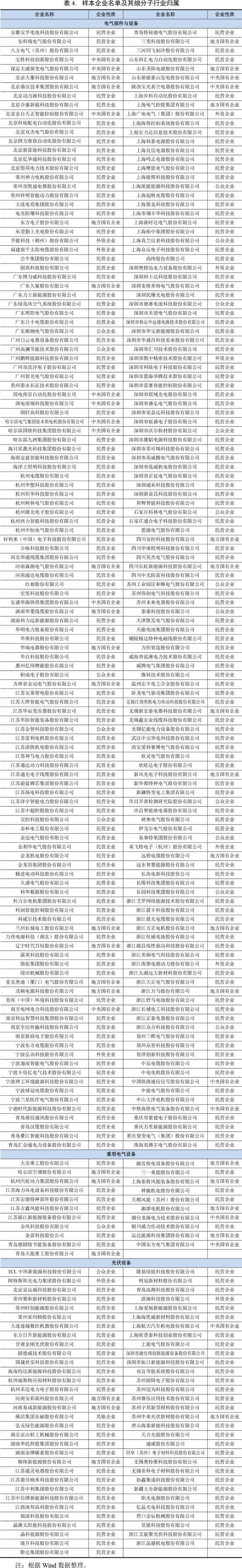 本文分析样本选取标准为WIND三级行业分类下的电气设备行业发债企业及上市公司(剔除重叠部分),共涉及企业360户。因合并口径因素剔除10户,因业务多元化程度高且明显影响样本质量而剔除10户,因数据缺失剔除8户。最终选取有效样本332户,如表4所示。根据Wind四级行业分类,其中电气部件与设备制造企业248户,重型电气设备制造企业21户,光伏设备制造企业63户。根据企业性质来看,民营企业占比达76.51%。