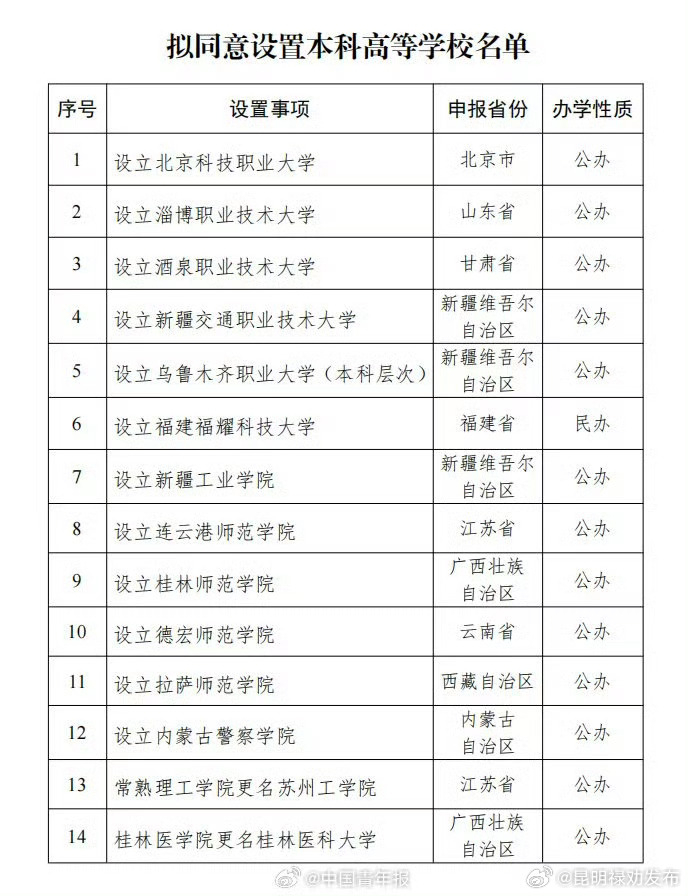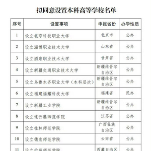 今天,教育部发展规划司发布《关于拟同意设置本科高等学校的公示》,拟同意设置北京科技职业大学等14所学校,现予公示。值得一提的是,上述名单中包括备受关注的“福建福耀科技大学”。