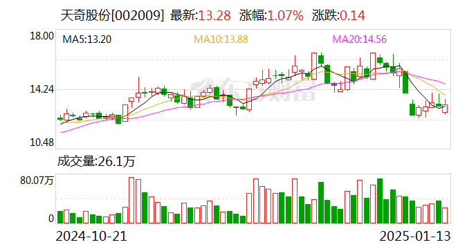 财中社1月13日电天奇股份(002009)发布公告,公司控股子公司长春天奇汽车智能工艺装备工程有限公司(天奇工装)参与设立吉林省绿色动力汽车产业专项私募股权投资基金合伙企业,合伙企业规模为2100万元,其中天奇工装以500万元认购合伙企业份额,占比23.81%。该合伙企业将通过股权投资专项投资于富奥智慧能源科技有限公司。
