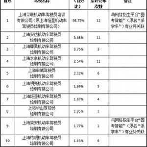 上海公布驾校投诉率排序,其中3家因大量退费纠纷暂停招收新学员