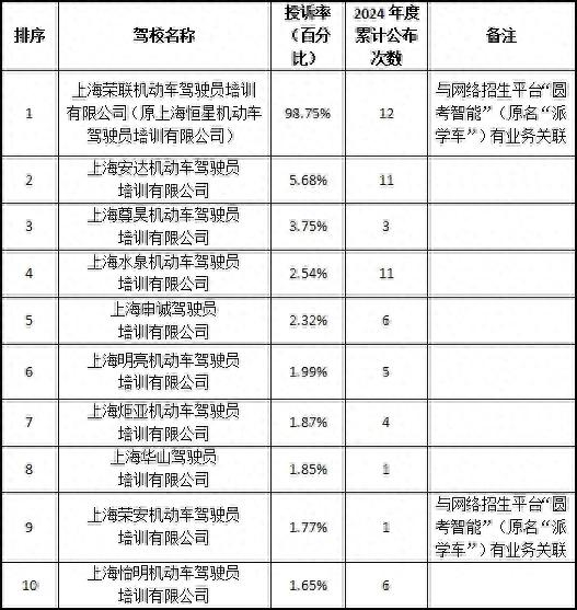 (原标题为《本市2024年12月及全年驾校投诉率排序公布》)