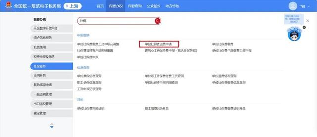 用人单位登录新电子税局后,在首页【我要办税】模块中选择【社保业务】,进入模块页面后选择【单位社保费退费申请】。