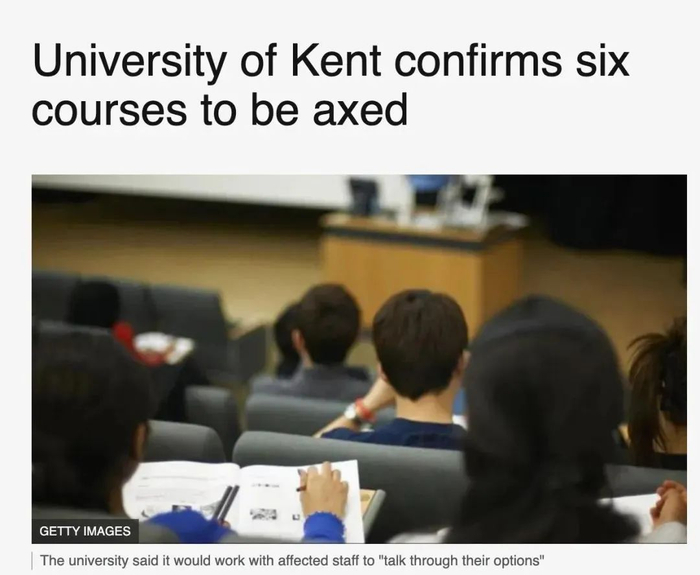 2024年3月,英国肯特大学宣布逐步淘汰6个学科领域的课程,包括艺术史、人类学、健康与社会关怀、新闻学、音乐与音频技术、哲学和宗教研究。图片来源:南风窗