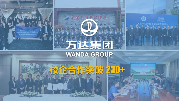 2024年,万达继续深耕校企合作,新签约包括澳门城市大学、喀什大学等15所院校,累计签约院校已经超过230家。打造“万达班”模式,参与课程设计、担任校外导师、组织职场实践,全方位贡献万达力量!