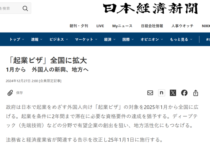 近年来,日本政府为了缓解少子高龄化社会所引起劳动力不足的问题,不断出台引进海外人才在日本进行创业。为吸引更多外国创业者,日本2025年1月1日起全面推行的新版创业准备签证政策,放宽了外国人在日本的有效时长,将现行的最长1年6个月的在留期限延长至最长2年,这一政策松动引发了广泛关注。