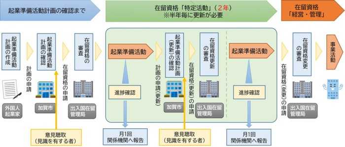 依据最新颁布的政策,持有创业签证的外籍人士将被授予特定活动(第44号)的在留资格,初次发放期限为六个月,但可连续更新,最长期限可达两年。