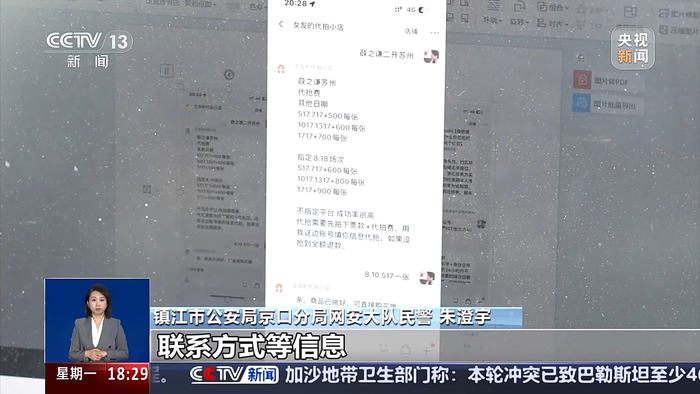 镇江市公安局京口分局网安大队民警 朱澄宇:该团伙分为软件作者、抢手、“黄牛”三个层级。其中杨某、王某等人作为软件作者,负责分析大麦、猫眼、票星球等各大票务平台漏洞,并开发抢票软件;赵某、周某等人作为抢手,直接使用抢票软件帮助“黄牛”抢购演出票;陈某、张某等人作为“黄牛”,通过淘宝、闲鱼、微信、抖音等互联网平台发布广告,收集抢票客户信息。