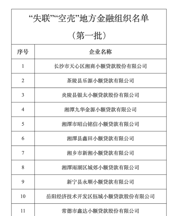 1月10日,湖南省地方金融管理局再次发布公告,同意注销茶陵县龙华小额贷款有限公司、常德市柳叶湖汇丰小额贷款股份有限公司等4家小额贷款公司发放小额贷款的业务资质。