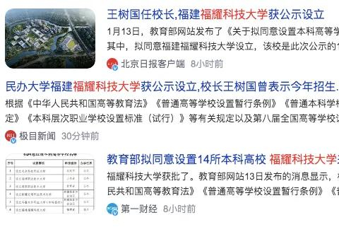 整个名单一共有14所大学,其中,福建福耀科技大学赫然在列,同时这也是此次公示的14所院校中唯一的一所由企业家捐赠修建的民办大学。