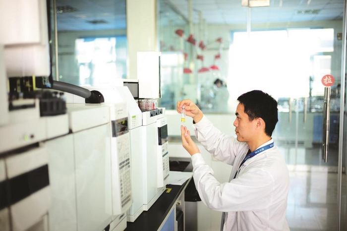 晨光生物科技集团技术研发中心人员正在进行实验操作。