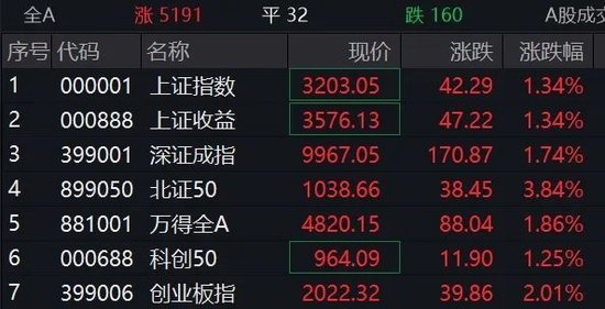 10:25 创业板指涨幅扩大至2%,沪指重回3200点,全市场上涨个股近5200只。