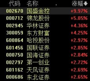 国盛金控涨停,锦龙股份、华林证券、哈投股份、天风证券、太平洋等跟涨。
