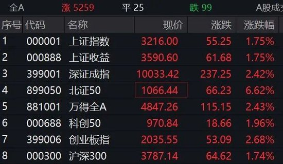 Wind数据显示,全市场超5200只个股上涨,下跌个股不足百只。