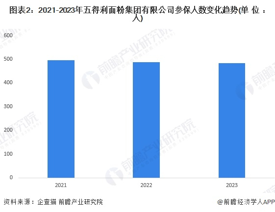 五得利面粉集团创建于1989年,是一家专业化生产面粉的民营企业。经过三十余年的不懈努力和实践,公司从一个日处理小麦能力15吨的作坊式小厂,发展成目前拥有六省十六地16家面粉子公司,1家天麦然挂面子公司,员工5800多名的大型制粉企业。2021-2023年,公司的参保人数有所下降,2023年降至484人。