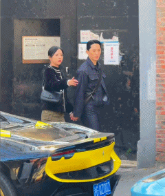 豪车车主穿着羽绒服开敞篷车,提前吃上感冒药只为了让韩男韩女街拍背景的含金量更高。