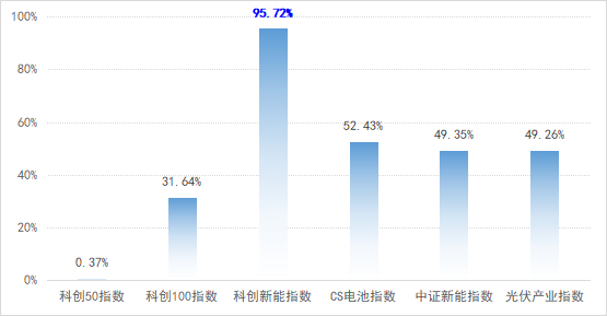 且在新能源强势行情中,科创新能指数的弹性更为突出。比如在2021年,科创新能指数以95.72%的涨幅,不仅“遥遥领先”于科创50、科创100这类科创板宽基指数,相较于同行业主题指数而言也更具超额收益。