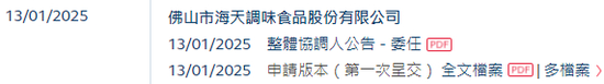 2025年1月13日,佛山市海天调味食品股份有限公司 FoshanHaitian Flavouring And Food Company Ltd. (下称“海天味业”)向港交所递交招股书,拟香港主板挂牌上市。