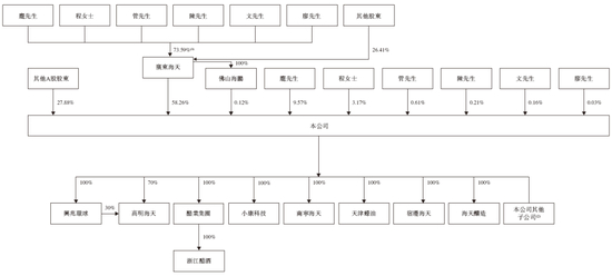 广东海天(一致行动人士集团拥有73.59%),直接持股58.26%,间接(通过佛山海鹏)持股0.12%,合计持股约58.38%;