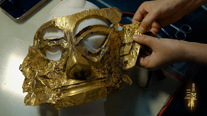讲述三星堆的纪录片,离不开一件件精妙绝伦的出土文物。作为国内首个使用影视级机械臂拍摄文物的团队,《重返三星堆》摄制组创新使用了24毫米探针微观摄影,全方位展现三星堆文物的细节,给观众们带来焕然一新的视觉体验。在他们的镜头下,精美的文物逐一登场:有着极度夸张的双眼和双耳的青铜纵目面具,象征着古蜀人对超凡感知、掌控天地力量的向往;仅半张出土却已光彩夺目的黄金面具,其精湛工艺展现出古蜀人对黄金材质的尊崇;还有那枝繁叶茂、分层而立的青铜神树,仿若连接天地的神梯,是古蜀人对宇宙与自然认知的具象化......这些文物带着神秘的古蜀密码,仿佛在诉说着古蜀先民的传奇故事,让今人得以窥探那个遥远而迷人的时代。