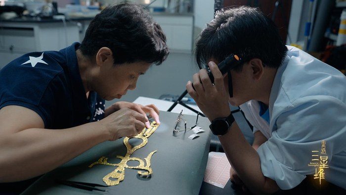 此外,《重返三星堆》不仅记录下了研究人员从蛛丝马迹中将散落各处的文物残件拼对成功的惊喜,还在青年手工制作人的文物复原中,展现上古工匠令人惊叹却又迷惑不解的工艺。片中,四川大学考古文博学院教授黎海超和团队使用最先进的科学装置来追溯三星堆黄金、朱砂、绿松石的来源,试图描述出三星堆人资源交换的网络,并且也想从这个网络的变化中找到三星堆“消逝”的原因。为此,他们先后进行了三轮木箱焚烧实验,不断求证、推翻、再求证。在这样质朴又充满孤勇的考古故事里,观众再一次重新认识了三星堆人惊人的创造力。