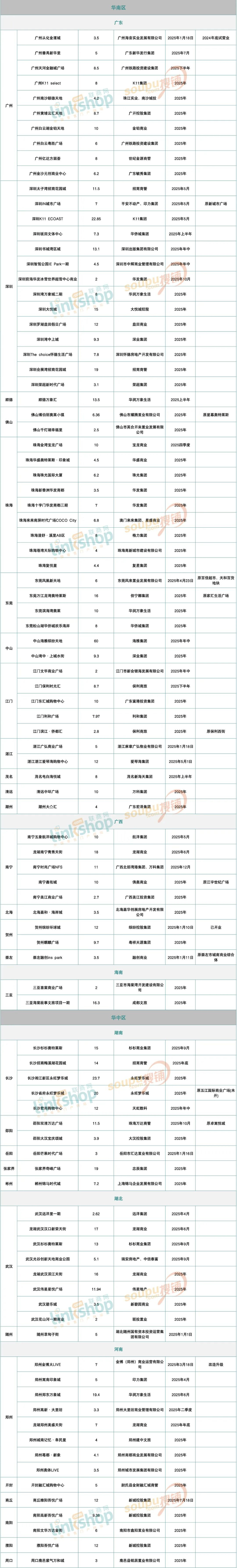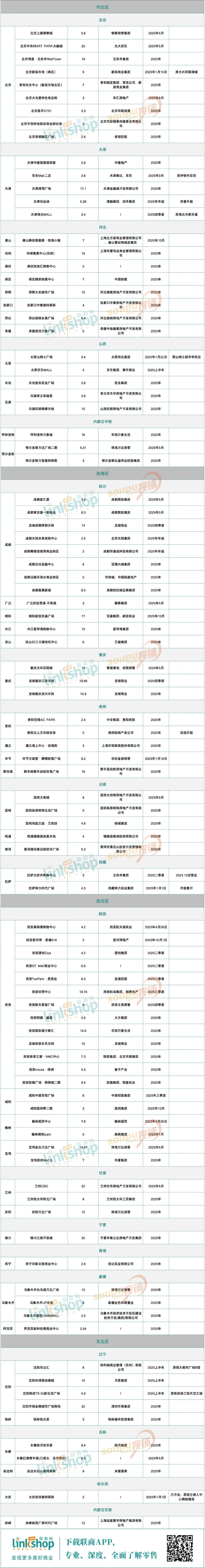 其他如1.1万㎡的上海松江橙光里、1.5万㎡的浦东国际机场T3酒店中心、苏州漕湖文体中心、1.5万㎡的无锡溪悦邻里中心、1万㎡的南京创智海蓝中心、1万㎡的漳州悦港汇广场、1.7万㎡的北京D15生活美学馆、7000㎡的天津团泊缤纷天地、1.7万㎡的宜宾古宋金街、重庆杨家坪金鹰女人街改造为LOT POP乐派等体量不足2万㎡的项目未在此次统计中,但上述项目均预计将在2025年开业。