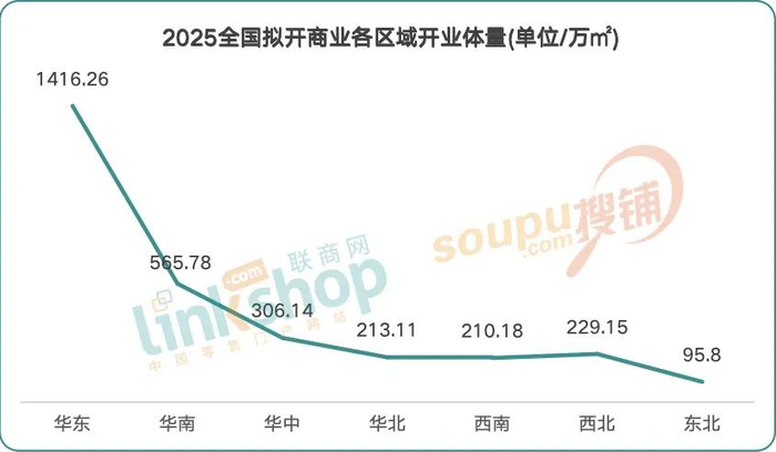 华东预计新增供应数量187个,占比约49%,新增供应体量1416.26万㎡;