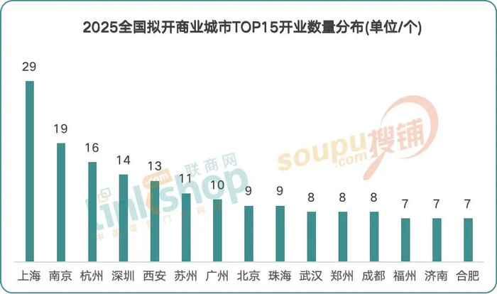 2025年的拟开业名单中,上海太平洋新天地、杭州恒隆广场、杭州光环梦中心、杭州世纪中心商场(AURA)、南京金陵中環JLC、南京越城天地、苏州华贸中心、南通如东大有境、厦门和美天地、SM厦门海沧、龙湖济南西城天街、青岛即墨吾悦广场、深圳K11 ECOAST、深圳大悦城、深圳湾万象城二期、长沙杉杉奥特莱斯等项目就备受期待。具体内容,可关注后续《联商网》关于2025年最具期待商业项目的报道。