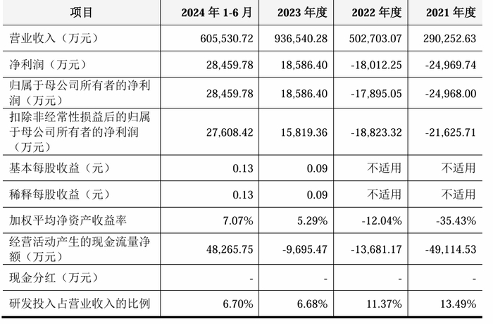 在财务方面,联合动力已实现扭亏为盈。2021年、2022年、2023年及2024年上半年,联合动力实现营业收入分别为29.03亿元、50.27亿元、93.65亿元及60.55亿元,实现归母净利润分别约为-2.5亿元、-1.79亿元、1.86亿元、2.85亿元。