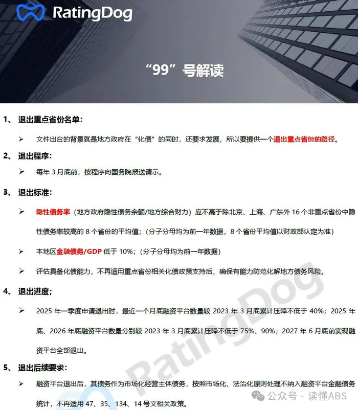 文件出台的背景就是地方政府在“化债”的同时,还要求发展,所以要提供一个退出重点省份的路径。