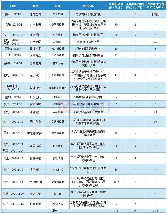 资料来源:公开信息,高工产业研究院(GGII)整理,2025年1月