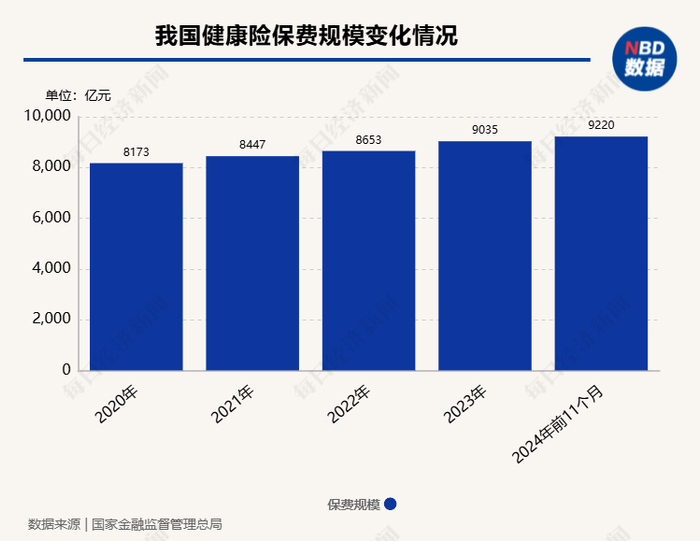 根据国家金融监督管理总局披露的数据,2024年前11个月,我国健康险保费规模为9220亿元,如果按月平均保费预测,2024年的健康险保费规模将超过万亿元。有研究机构预测,2024年全年医疗险占比预期将超过重疾险。