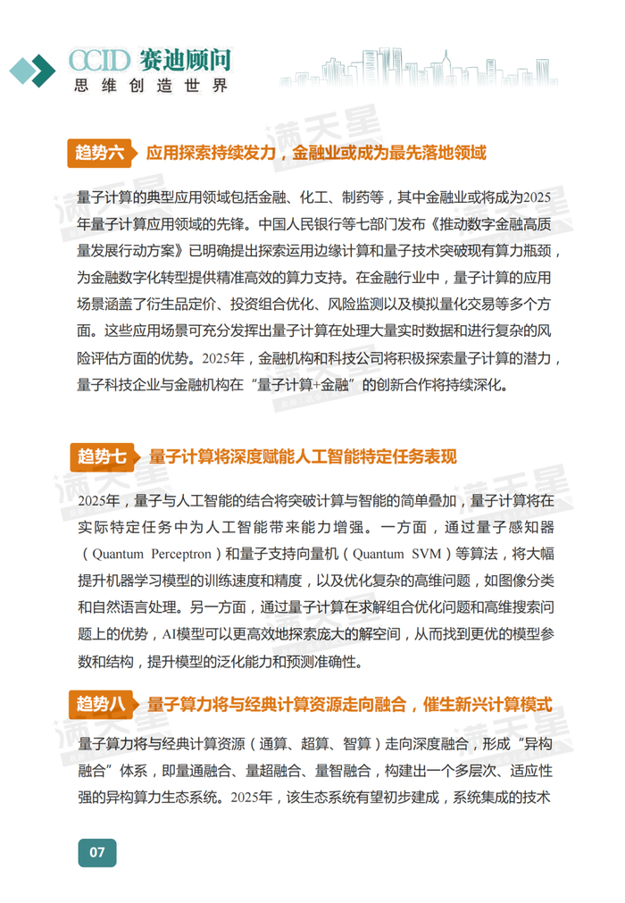 量子计算的典型应用领域包括金融、化工、制药等,其中金融业或将成为2025年量子计算应用领域的先锋。量子科技企业与金融机构在“量子计算+金融”的创新合作将持续深化。