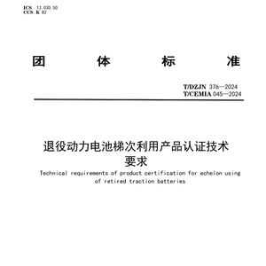 本标准规定了退役动力电池梯次利用产品的认证技术要求,包括一般要求、外观要求、信息要求、性能要求、安全要求及一致性要求。适用于退役动力锂电池单体、模块和电池包或系统的梯次利用产品技术、安全指标判定。