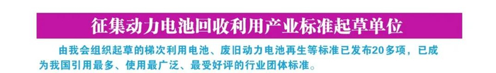 本站从电池回收利用委员会获悉,2024年动力电池回收利用行业重要标准正在制定中,欢迎各优秀企业踊跃加入起草工作组。
