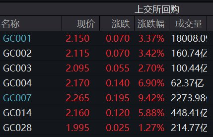 当天盘中,GC001出现显著上行,午后一度触及5%的高位,较前一日收盘价最高上行298BP(基点),创下2024年3月末以来新高,随后有所回落。截至收盘,GC001全天加权平均利率为2.62%。R001(深交所隔夜质押式回购利率)则一度触及4.2%,收盘回落至2.075%。