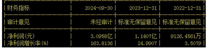 2024年1-9月业绩增长幅度大。