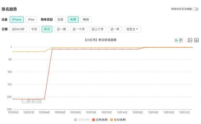 1月13日,小红书App在美区应用榜单的排名从209位迅速上升到了第2名。